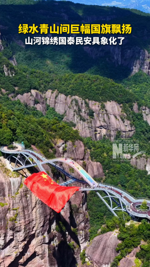 微观浙江|绿水青山间巨幅国旗飘扬献礼国庆