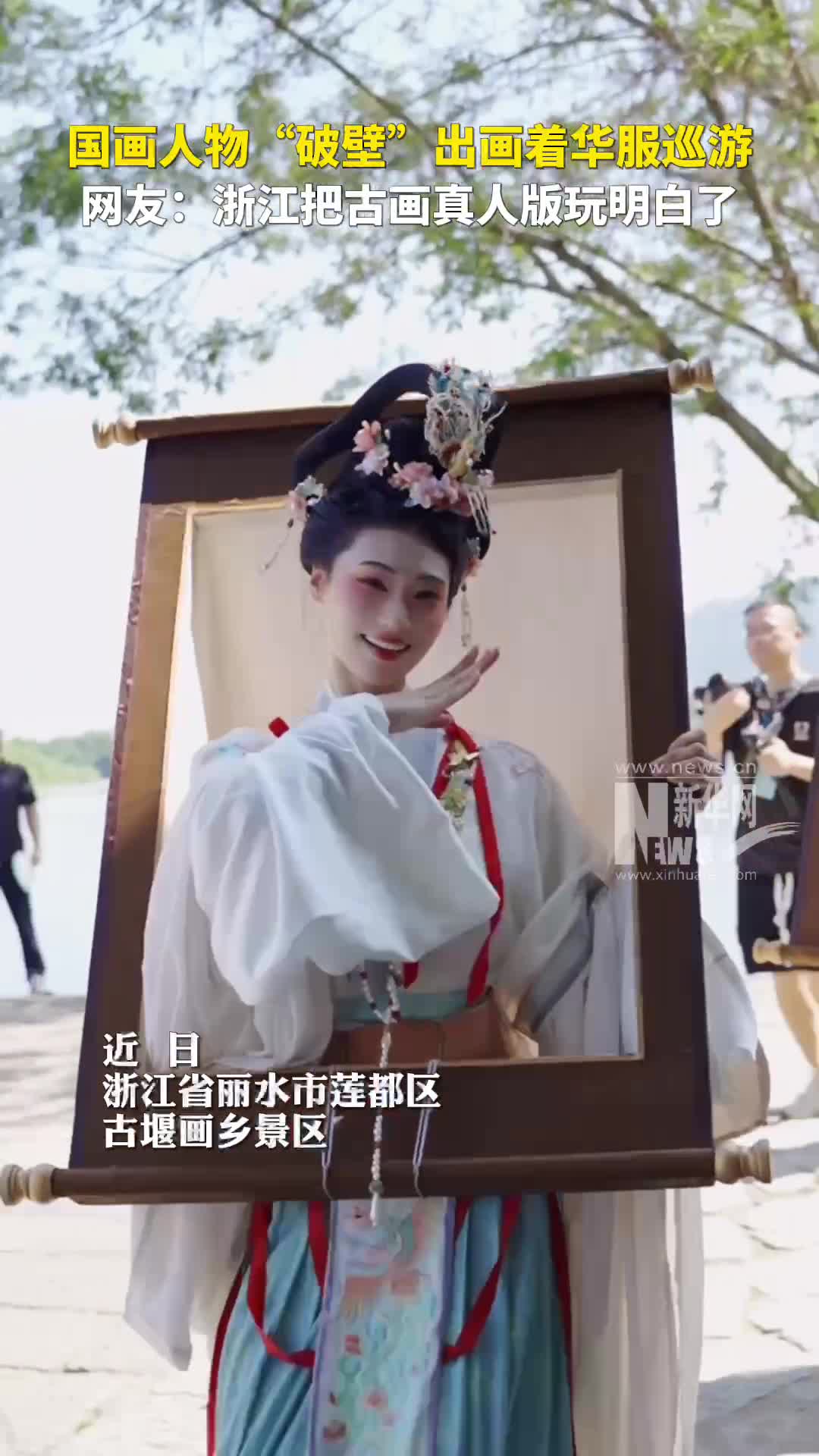 微观浙江丨国画人物“破壁”出画着华服巡游