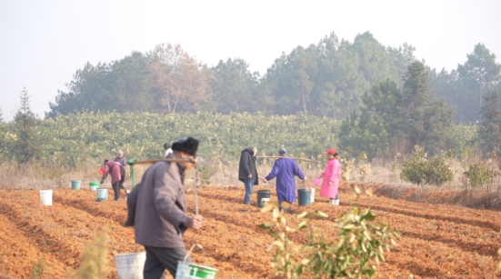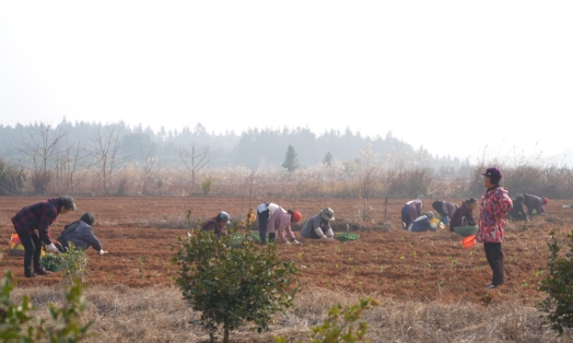 1月1日,在浙江省衢州市常山县球川镇馒头山村,灿烂的阳光下,种植基地上前几天刚移栽的花菜苗开始返青。“驻村第一书记”冯佳佳利用休息时间,到村里与村民们交流接下去的田间管理事宜。