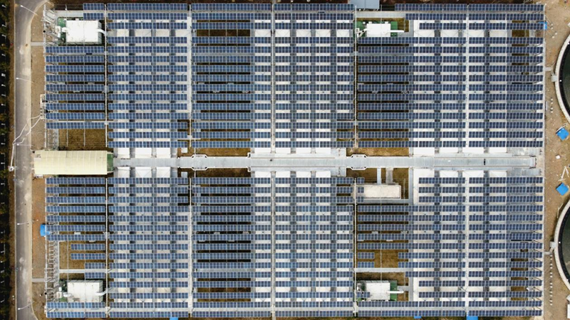 半空中,光伏板整齐划一地排列在厂区上方,将光能源源不断地转化为电能;光伏板下,城市废水经过处理变废为宝,再生水作为“城市第二水源”致力于缓解城市水资源短缺问题,为城市“解渴”发挥着至关重要的作用。