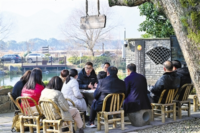 1月4日“众人监督日”。杭州市余杭区径山镇小古城村村口池塘边,“樟树下议事”的木牌下,再次热闹起来。