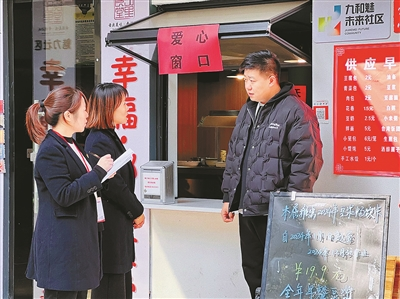图③:上城区纪委监委立足“监督的再监督”职责定位,紧盯“幸福·邻里食堂”老年助餐服务的关键环节,以各种形式开展靶向监督。图为该区九堡街道纪检监察干部对辖地内的邻里食堂开展实地监督检查。胡杭娇 摄