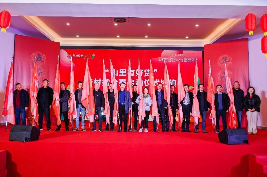 活动现场还举行了富盛镇2024年“一村一主播”党建引领乡村振兴助农直播带货比赛暨“山里有好货”乡村擂台赛授旗,并颁发导师聘书,发布以富盛本土食材为主料的“富盛味道”年夜饭,农产品供应商签署“富盛味道”农产品品质承诺书,富盛镇乐龄中心与共建单位签署“爱心竹林”合作协议,富盛镇村企共富项目签署共富合作协议,与浙江大学开展“万亩富硒地”健康农产品种植研发合作签约。