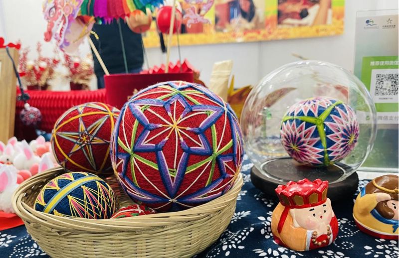 在众多非遗展位中非遗技艺手鞠球更是以其色彩艳丽的图案、幸福好运的寓意成了农博会上一道独特的风景。
