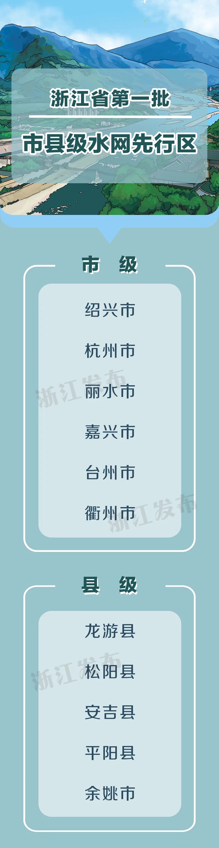 近日,省水利厅印发《关于做好第一批市县级水网先行区建设工作的通知》,确定绍兴市等6个设区市为第一批市级水网先行区,龙游县等5个县(市)为第一批县级水网先行区。