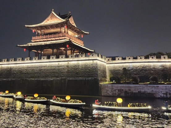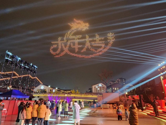 2024“祝福·绍兴古城过大年”活动启动仪式上,由1000架无人机组成的表演方阵,为市民游客献上一场空中表演秀。同时,由50条乌篷船组成全长300多米通体发光的“龙船”,从古城城北桥开始,途经迎恩门风情水街,沿着环城河巡游至稽山公园又一村游船码头。通过直播连线,迎恩门、城市广场、黄酒小镇三大主题灯会及迪荡城市灯光秀同步开启,拉开古城过大年系列活动序幕。