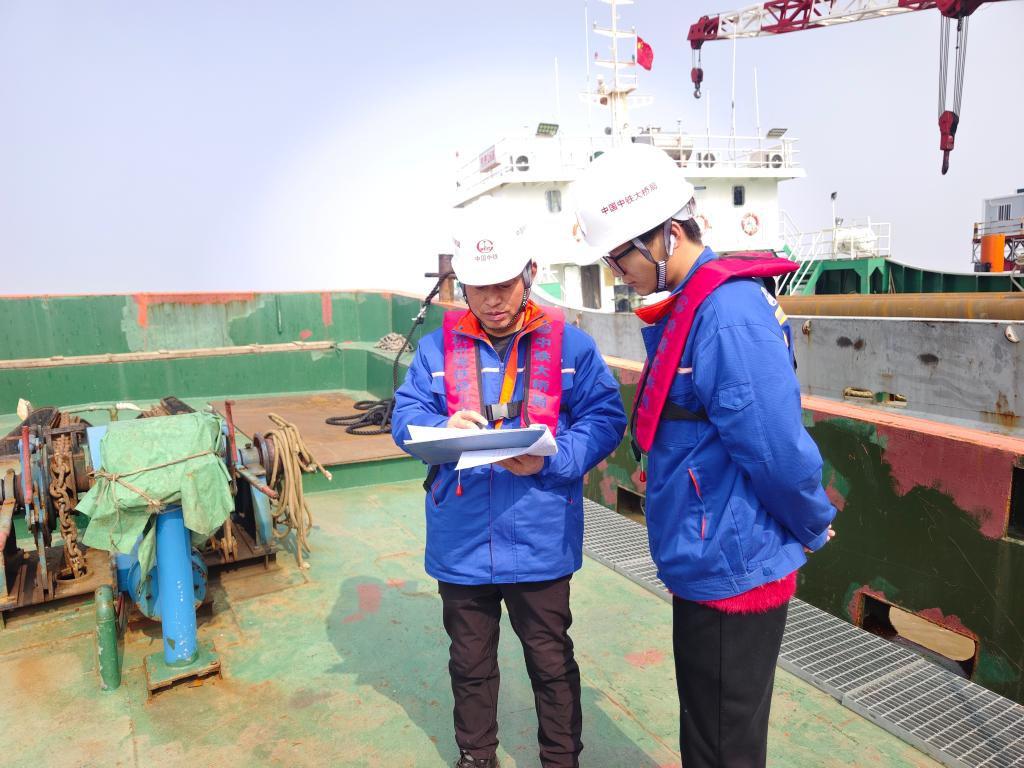 除夕上午11时许,待海潮退却,杭州湾跨海铁路大桥项目经理部一分部副经理周朋便乘着交通船登上了9号工作平台。作为大桥墩身、箱梁施工的管理者,周朋每天在海上作业现场的时间超过12小时。春节期间,他作为坚守岗位的职工和生产部负责人,需要时刻检查大桥建设进度和质量,紧盯各类现场并嘱咐施工安全。