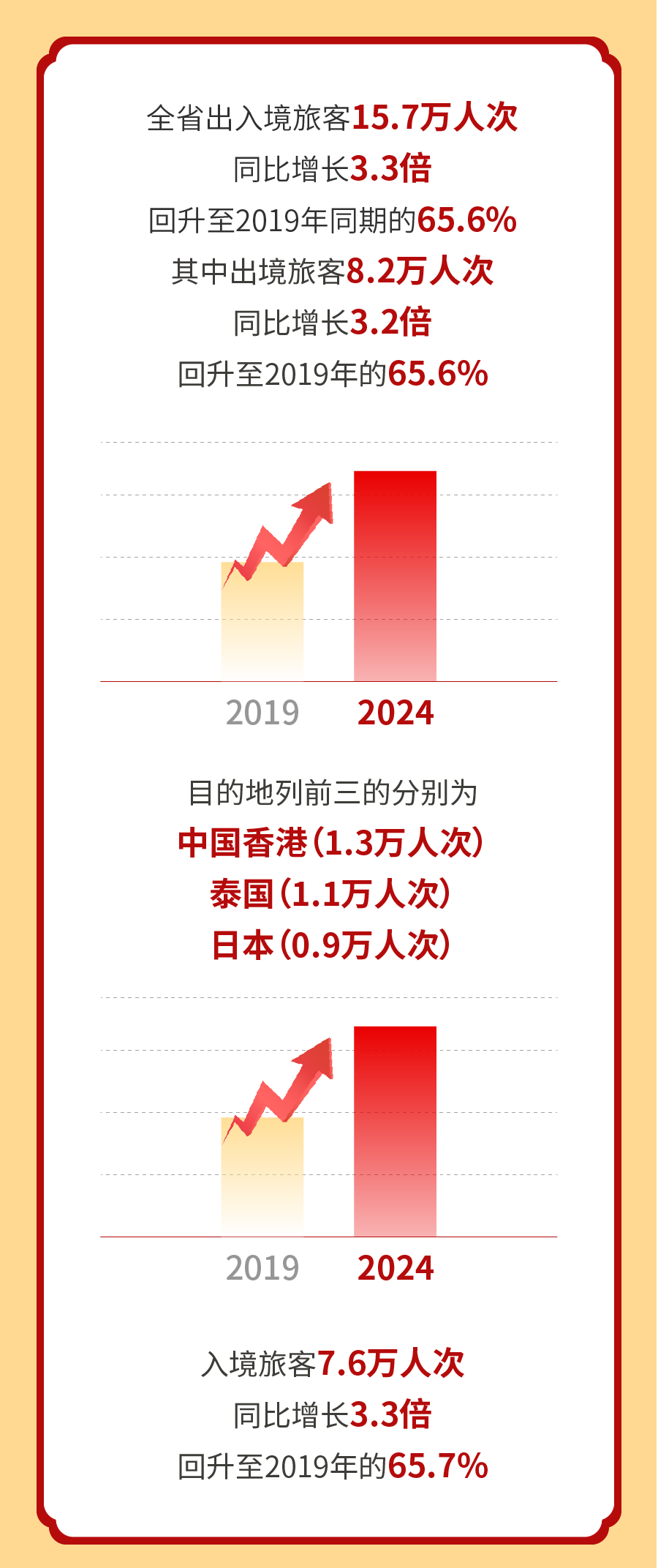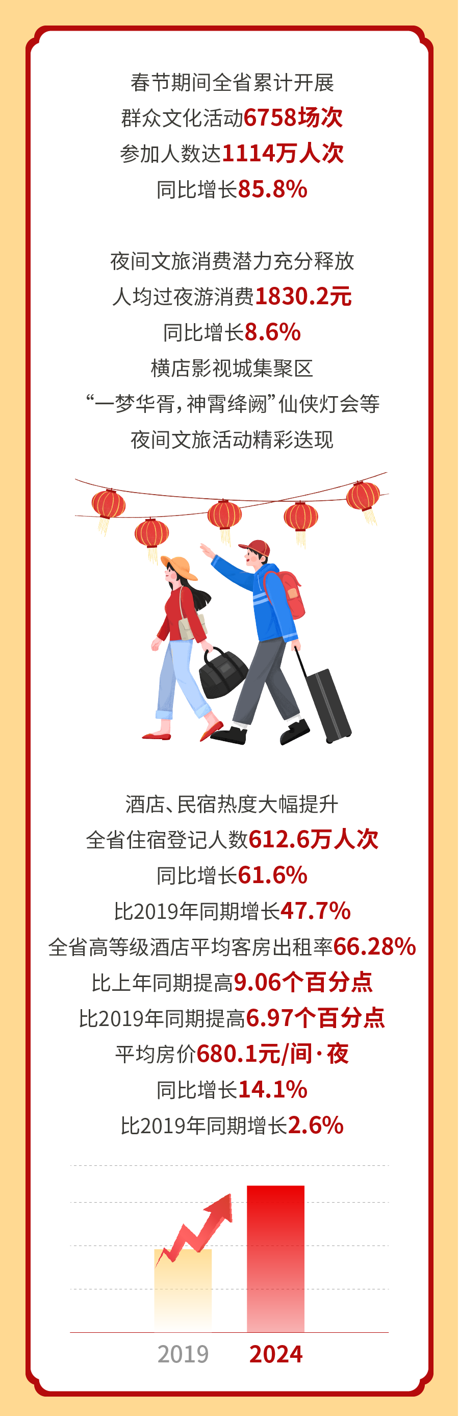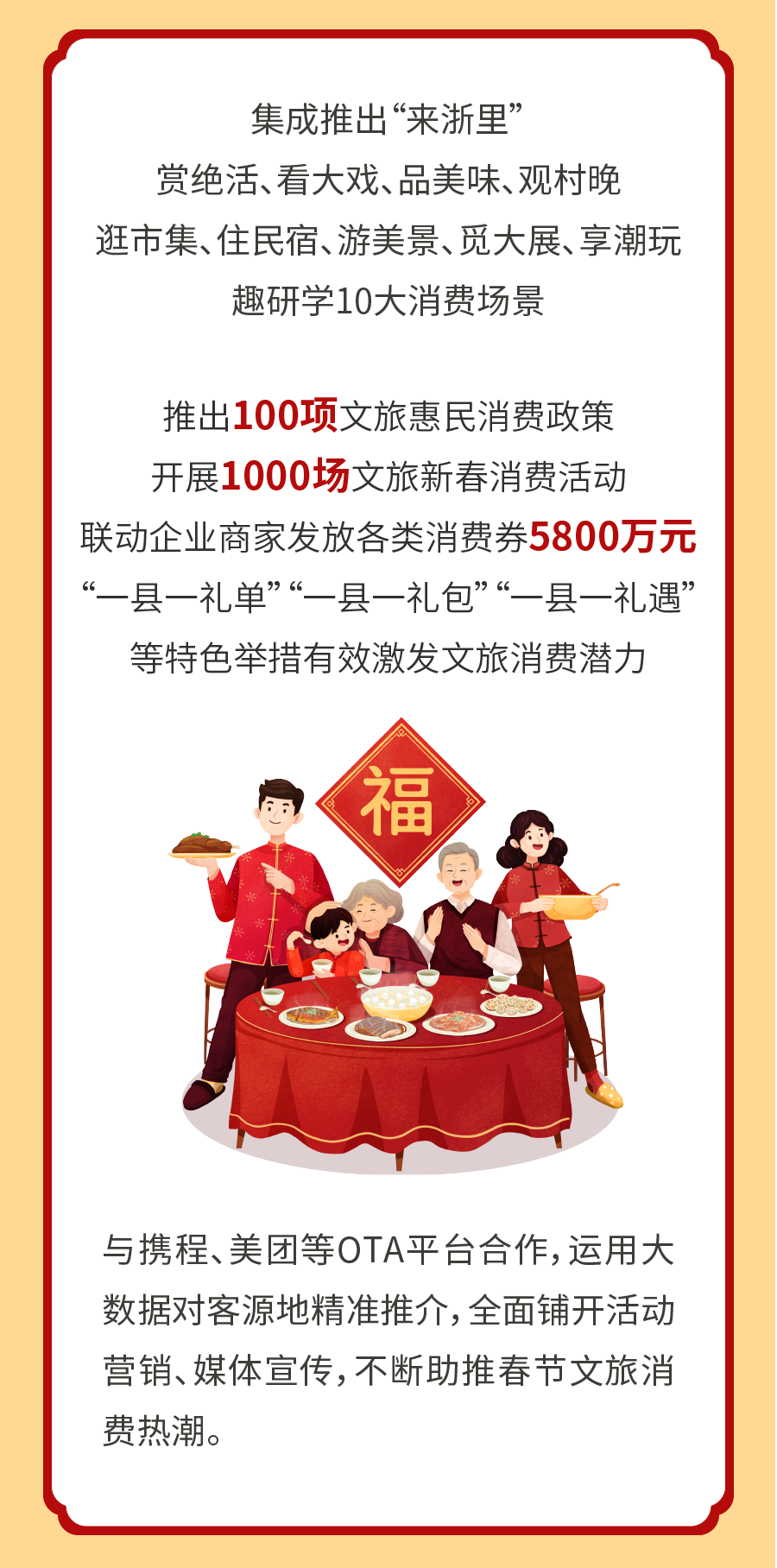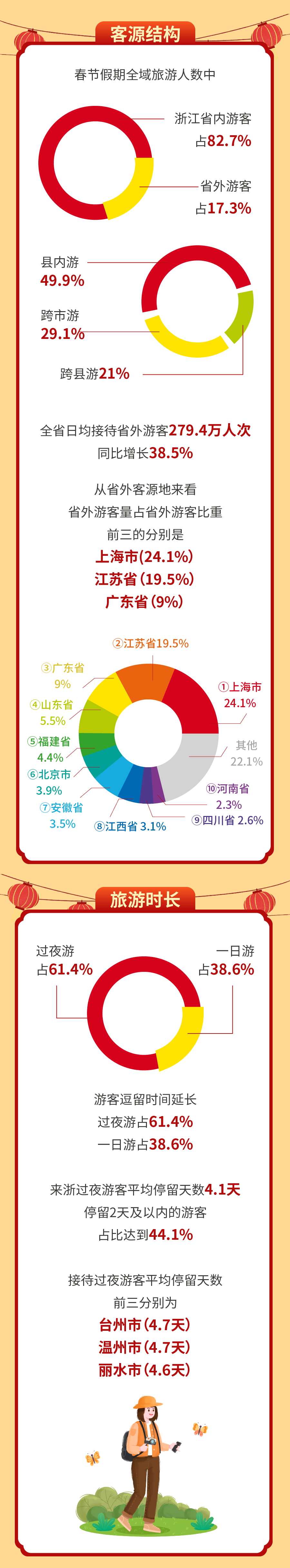 假期旅游市场持续升温,居民消费潜力不断释放。2024年春节期间,浙江累计接待游客3032.6万人次,全域旅游收入437.6亿元;全省银联商务累计消费金额达898.10亿元;长三角铁路假期8天发送旅客逾1700万人次。具体情况,一图纵览。