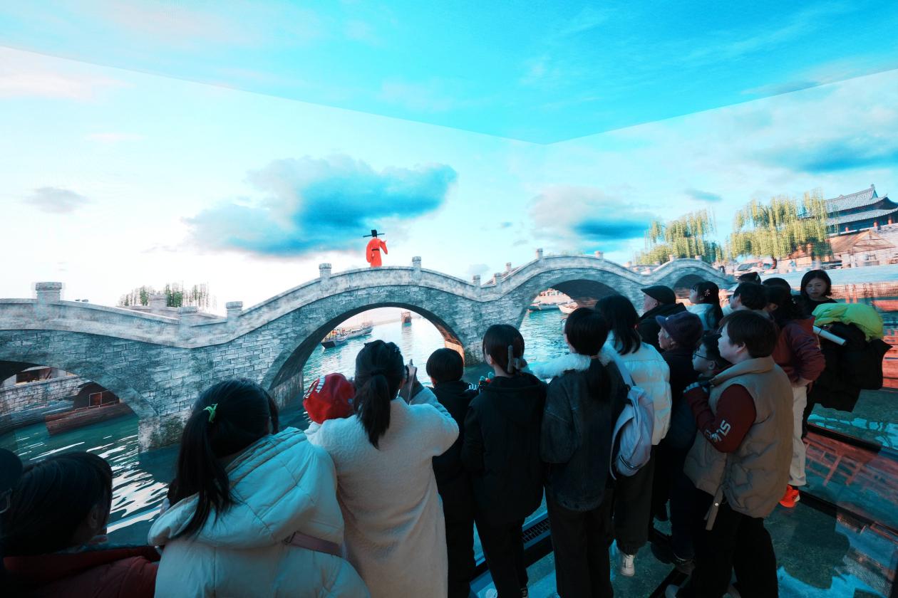 此外,展厅二楼还特别打造了“官河印象”沉浸式演绎,以官河记忆为主题,通过数字科技手段,让市民们身临其境地穿越古今,体验官河历史文化和甜蜜古城的幸福生活。