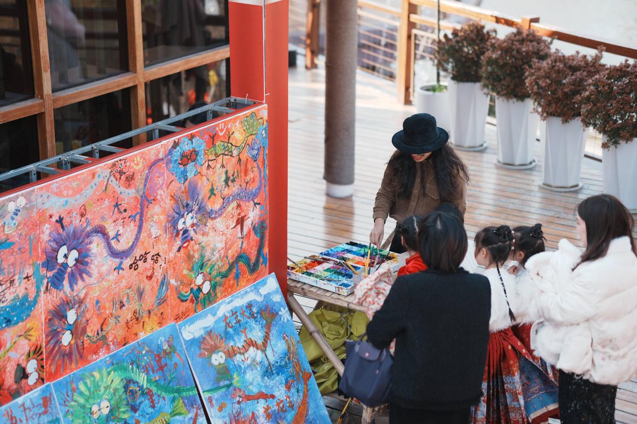 从亲手编一个龙年中国结,到画一条属于自己的五彩祥龙;从听一场《大话西游》评书,到穿着汉服体验宋式点茶;从逛一逛小掌柜书市,到与NPC下一场中国象棋……特别是活动现场开展的集印章抽大奖、打卡迎福等融合传统文化和黄岩特色的多种新潮互动活动吸引了众多游客争相参与,让大家亲身感受了一场精彩纷呈的文化盛宴。