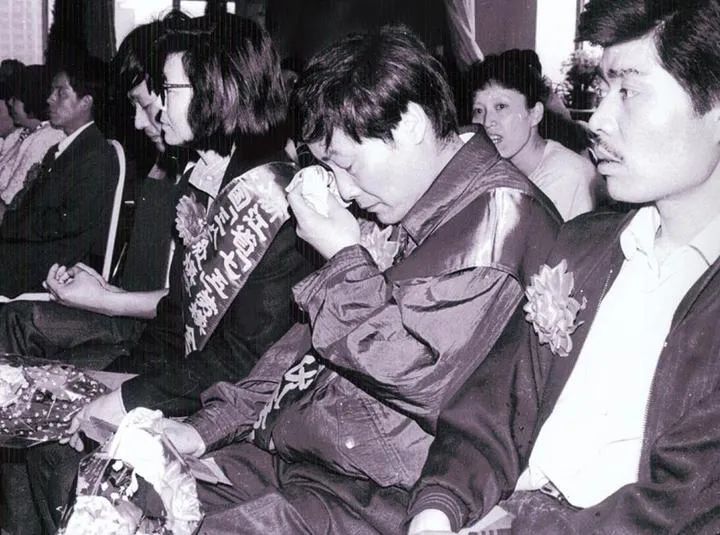 1992年4月28日,宗庆后在杭州市上城区组织的表彰活动中被“重奖”10万元。这是宗庆后(前右二)接过奖金后激动得哭了。新华社发