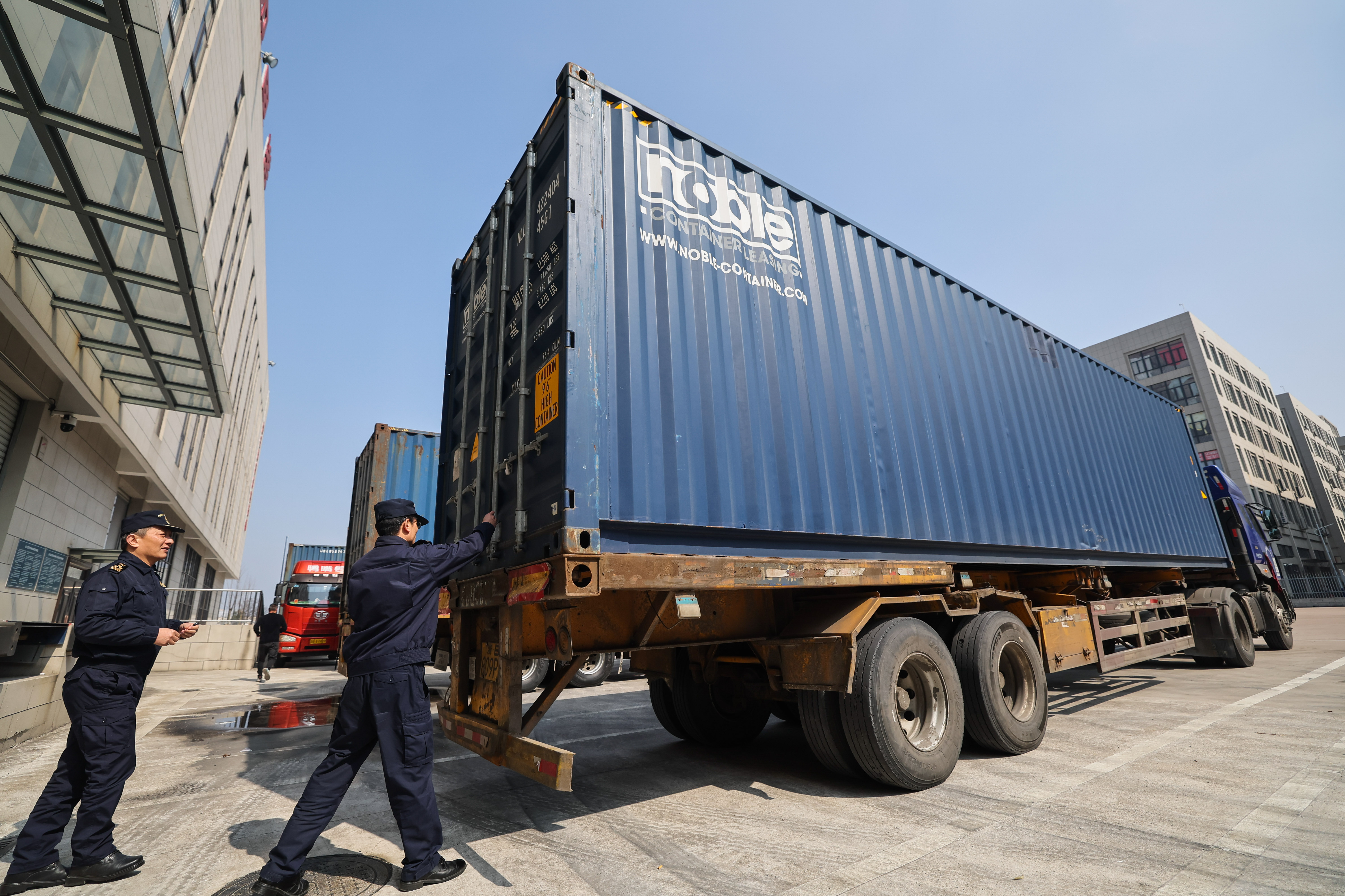 2月27日,在织里镇的吴兴织里港海关监管作业场所内,海关关员为集装箱车辆施封关锁。湖州吴兴织里港海关监管作业场所是集海关监管、智慧仓储、物流中转、云数据管理为一体的现代化监管场区,织里镇的外贸企业在“家门口”就能享受“一站式”通关便利,方便童装产品出口的同时也带动了周边产业集群联动发展。新华社记者 徐昱 摄