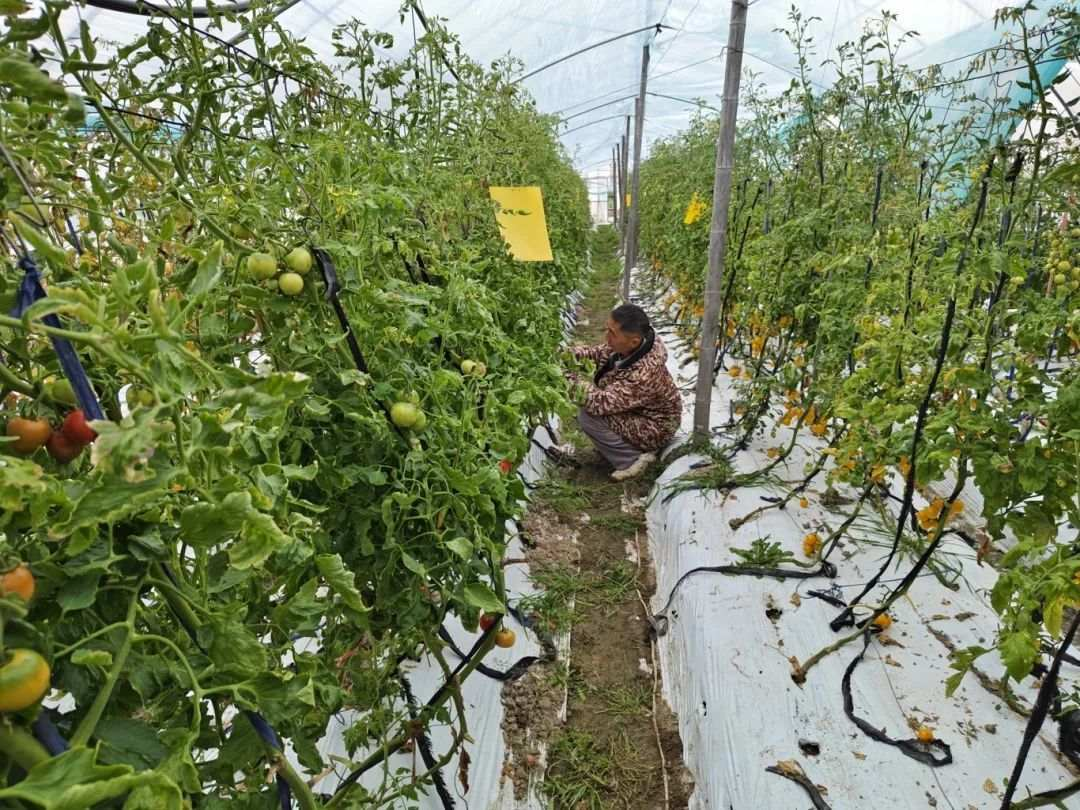 3月15日,走进浙江省三门县稞地家庭农场,白色的大棚一座连着一座,掀帘进入小番茄种植棚,只见红黄绿相间的小番茄点缀藤蔓中,煞是清新可爱。