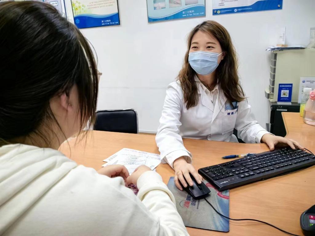 浙江大学医学院附属第二医院过敏(变态反应)科主治医师杨波云(右一)为患者就诊。(受访者供图)