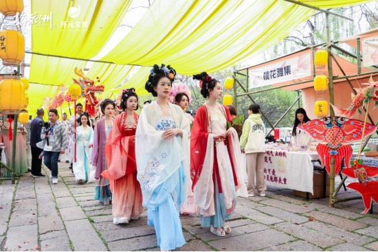 活动现场开展了梦回桃源—梅花洲沉浸式宋韵桃花集系列活动,融合沉浸式宋韵游园会、花神巡游、桃花市集、梦回桃花岛演艺等。游客们可以穿越千年,化身宋“潮”人,以沉浸式体验千年古镇背后的历史文化和动人故事。