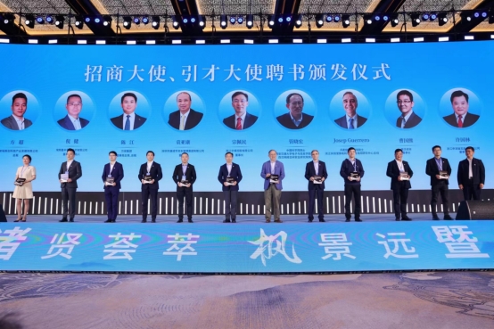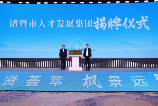 今年浙江“新春第一会”对人才队伍建设作出了全面部署。为推动各类人才各尽其才、大显身手,诸暨市委常委、组织部部长王奋在会上作引智推介。王奋介绍,诸暨将以“三支队伍”建设为牵引,为全力打造新质生产力先发地提供人才智力支持。大会还举行了诸暨市招商大使、诸暨市引才大使聘书颁发仪式,12名受聘大使发挥自身影响力和资源优势,帮助诸暨做大“朋友圈”。诸暨市人才发展集团有限公司也在现场揭牌。该公司是诸暨市文旅集团和浙江省人才集团的合资公司,负责服务人才寻访招引,并提供各类人才培训、人才测评、职业技能等级认定、人才个性需求、人才综合素质提升等服务。