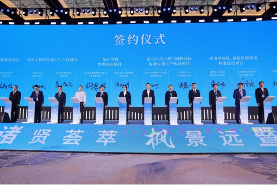 自2015年起,诸暨通过举办发展大会,举行项目签约活动,一步步推动诸暨县域经济高质量发展。本届发展大会共签约新建20万吨特种高温合金锻线材生产线、箭元科技大型可回收液体运载火箭生产基地等18个产业项目,其中工业项目16个,服务业项目2个,涵盖新能源、航空航天、生物医药、人工智能等领域,计划总投资246.2亿元。此外,诸暨市人民政府和深圳市浙江商会签订战略合作协议,将在智能视觉、航空航天、新材料、生命健康领域开展深度合作。