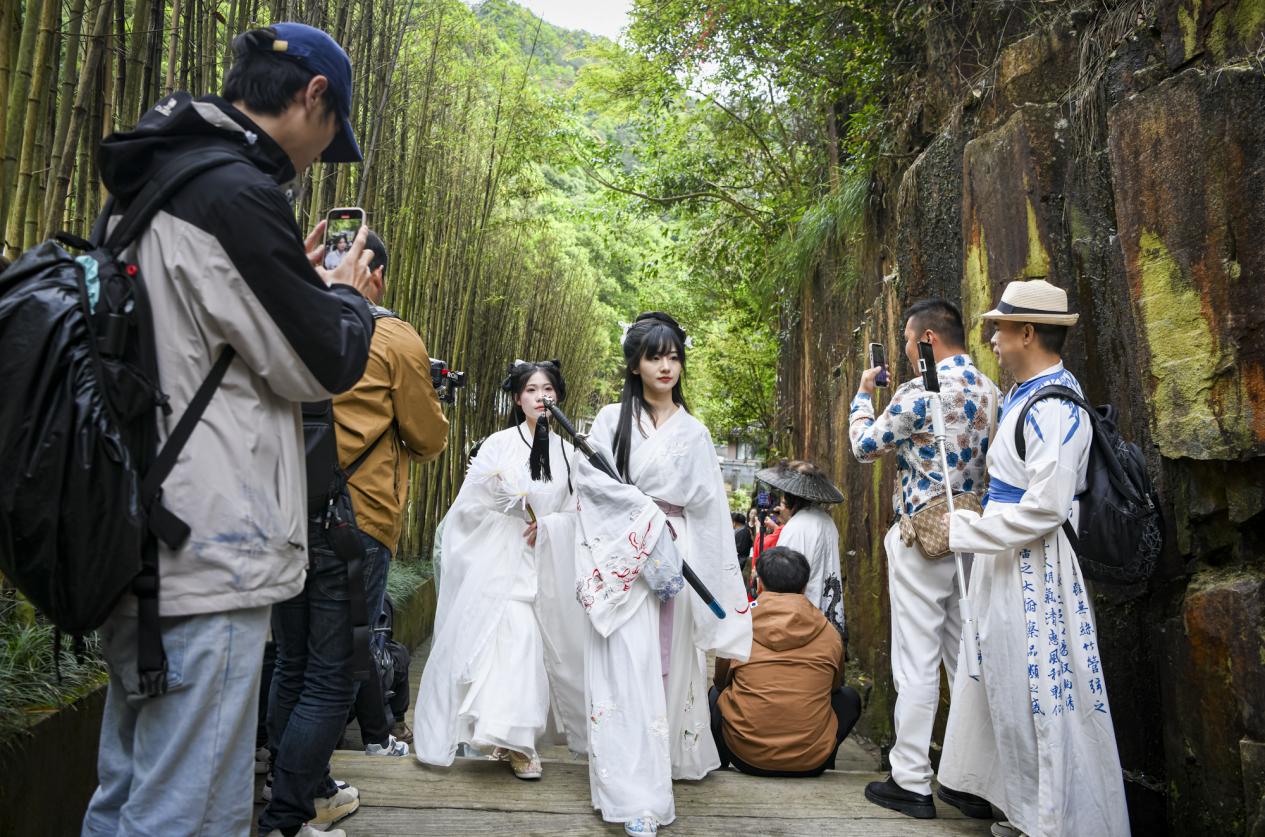 近年来,百丈漈景区探索将武侠风作为文旅主题,推动线上短视频播放量、话题热度等均超百亿数量级,线下接待游客数、门票收入等大幅增长,年轻游客占比从过去四成增长到七成,初步形成文旅爆款、实现景区出圈。