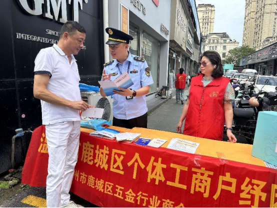 温州市鹿城区市场监管局松台所工作人员对辖区个体工商户开展政策普及与指导。温州市鹿城区市场监管局供图