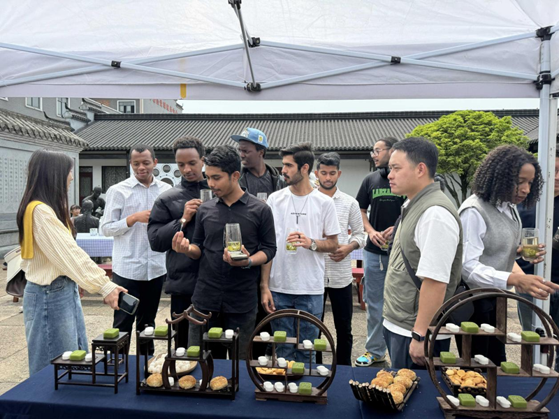 活动上,来自台州学院的海外留学生和临海归国留学生们化身台州府城海外传播官,踏入了羊岩山万亩茶园,展开了一场别开生面的文化交流之旅。
