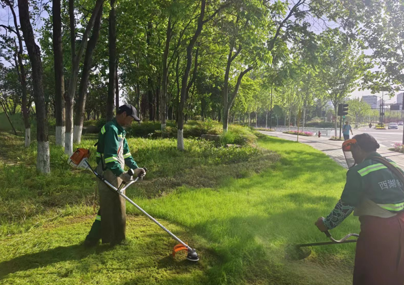 在龙坞入城口、转塘入城口等重点点位,工作人员对退化草皮进行更换清理,对绿地内各类乔灌木进行细致地修剪、对花灌木进行抹芽,确保绿地整洁有序,为市民提供一个优美的绿地环境。同时,加强节日期间巡查,防止破坏绿地的行为发生,让绿色生态得到更好的保护。