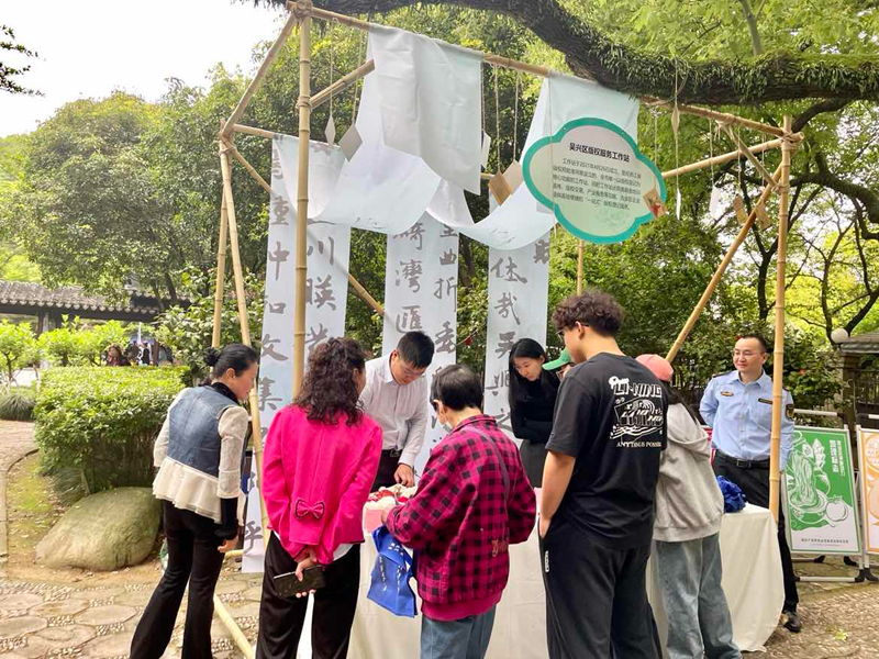 活动现场,“@湖州安霞”“@陈老师话江南”等多位网红见证了“书香吴兴”全民阅读品牌发布,沉浸式体验诗词情景演绎《如果没有李白》,聆听了《吴兴赋》配乐朗诵以及《在莲花庄遇见赵孟頫》“悦读经典”人文课堂第一讲等……此外,现场还有全民阅读捐书活动、知识产权宣传活动、吴兴赋明信片领取打卡、非遗漂漆体验、张小凤湖笔、赵孟頫书画展观展等暖场活动,让缕缕书香浸润吴兴。