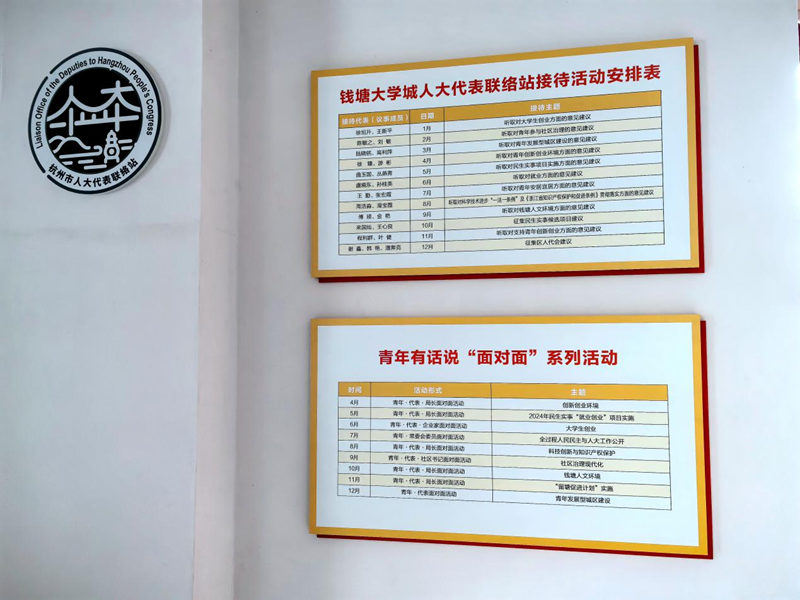 “我们的活动计划已张贴在墙上,每月都将围绕就业创业、全过程人民民主与人大工作公开、科技创新与知识产权保护、青年发展人文环境等青年关心、城市发展聚焦的主题,为青年与常委会委员、人大代表、部门负责人直接沟通搭建平台。我们希望通过这些活动,推动钱塘对青年更友好、青年在钱塘更有为,也为钱塘发展注入澎湃的青春动能和创新活力。”白杨街道人大工委主任、大学城联络站站长徐旭升表示。