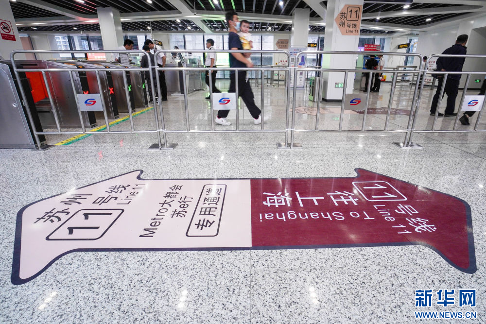2023年6月24日,乘客在苏州轨道交通11号线花桥站进站乘车。当日,苏州轨道交通11号线正式投入运营,并与上海轨道交通11号线实现无缝换乘,长三角核心城市间首次实现地铁系统跨省互联互通。新华社记者 李博 摄