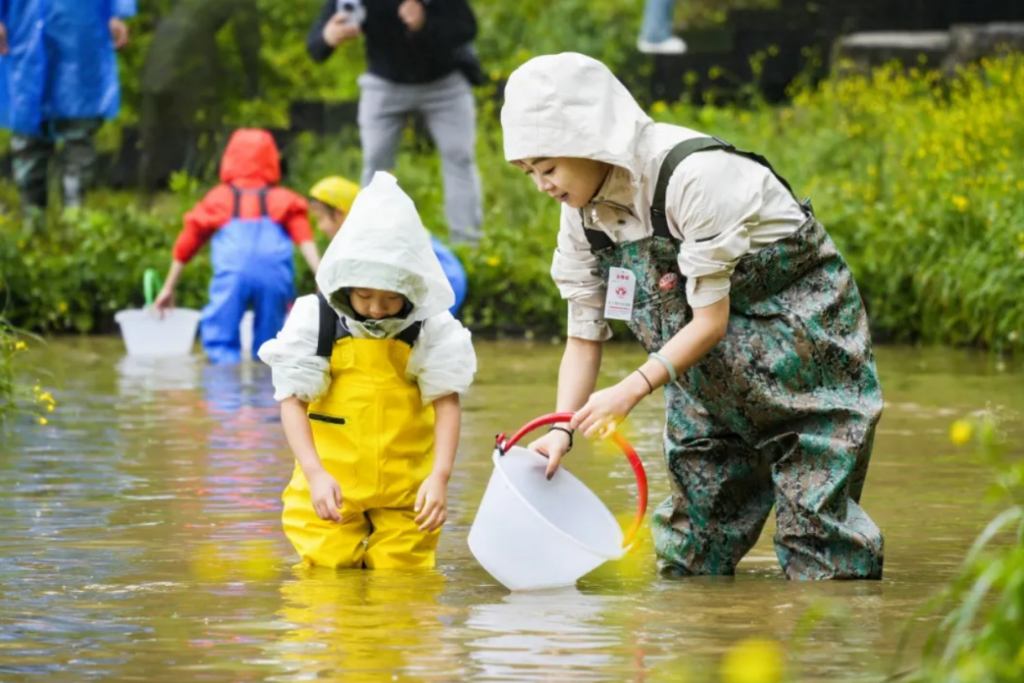 除了仙气缭绕、云海茫茫的梯田风光,景区还推出了人气颇高的沉浸式互动体验。在梯田的“春趣花样节”上,田间趣味赛、盲盒认养、漆扇体验、国风NPC互动等多种精彩环节更为游客开启了梯田的“花样”玩法。