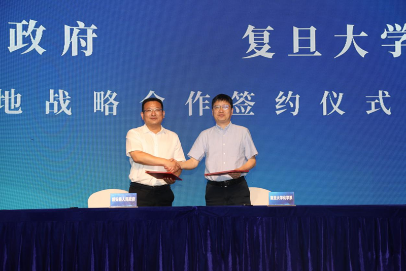 上海复旦大学化学系与磐安县人民政府签订校地战略合作协议。