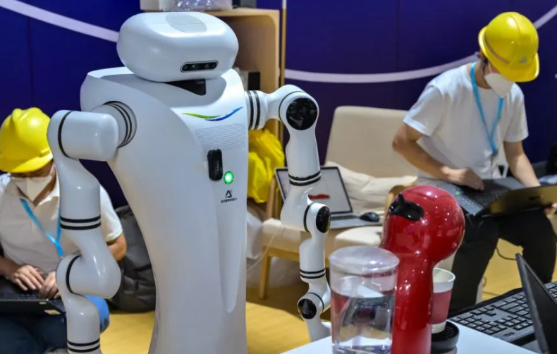 峰会现场的双足机器人“大力”也十分吸引眼球,打起太极来有模有样,令人忍俊不禁。除此,“大力”还是勤劳能干的家庭保姆,无论是洗衣还是收纳,统统不在话下。在现场还能看到可爱机灵的机器狗“笨笨”,它的身体灵活,能当宠物陪伴人类。“‘笨笨’会陪家里人一起运动,还能一起出门。它能自动避障,也会进行安全巡逻,还可以进行语音通话,是个忠实可靠的好伙伴。”现场工作人员介绍道。