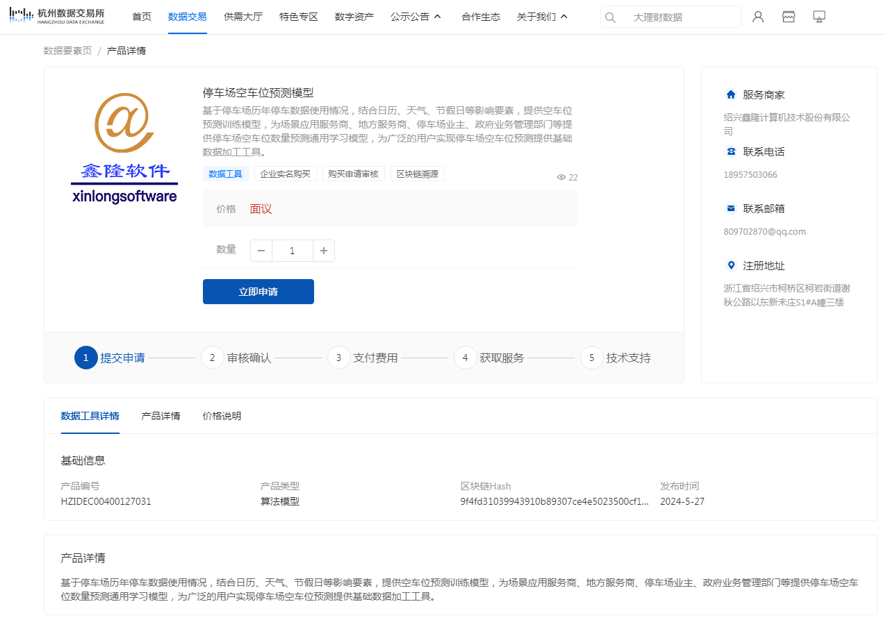 提前预测停车场空位,优化交通资源配置,让群众出行更便利。近日,浙江省绍兴市柯桥区首个公共数据授权运营数据产品“停车场空车位预测模型”,通过杭州数交所合规审核,在杭州数据交易所挂牌上架,成为绍兴市首个在数交所上架的公共数据授权运营项目数据产品。