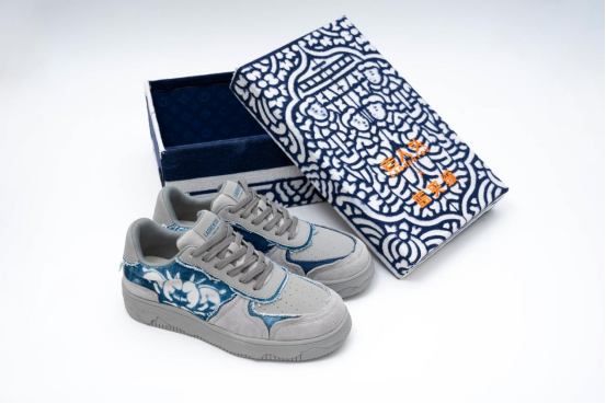 经过大量市场调研,2024年,老人头实现对缬影轻行、蓝梦缬步两款蓝夹缬联名鞋款的量产售卖,让非遗文化从展台走向现实生活,实现“飞入寻常家”。此外,永昆昆曲联名款“空谷山茶”、畲族文化联名款“回梦畲影”、瓯绣联名款“炎”等鞋款也正在筹备量产售卖。