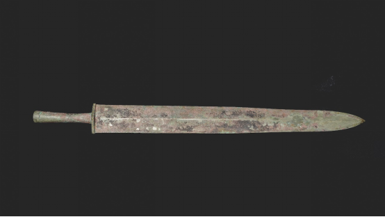 越王不光剑:全长59.5厘米,身宽4.7厘米,柄长9.2厘米,首径4.3厘米,国家一级文物。