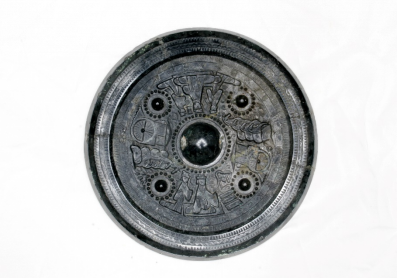 车马神仙画像铜镜:直径22.5厘米,缘高1.2厘米,钮径4.1厘米,国家一级文物。