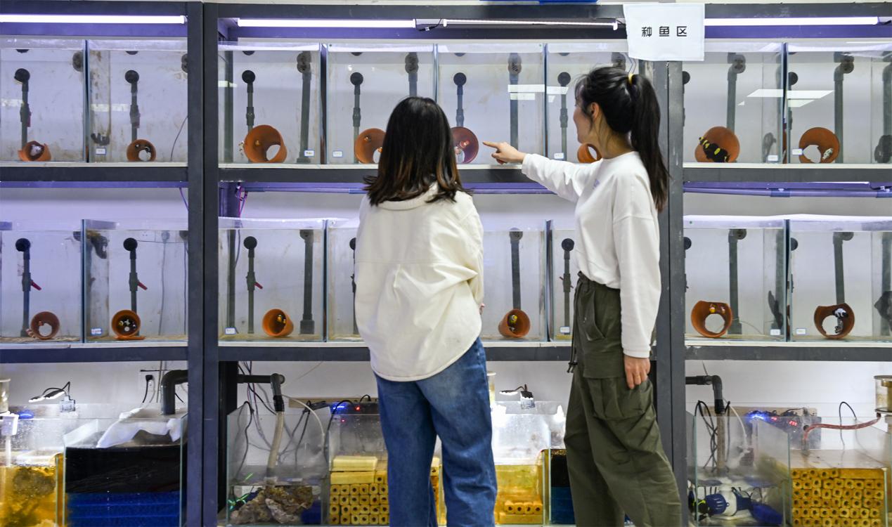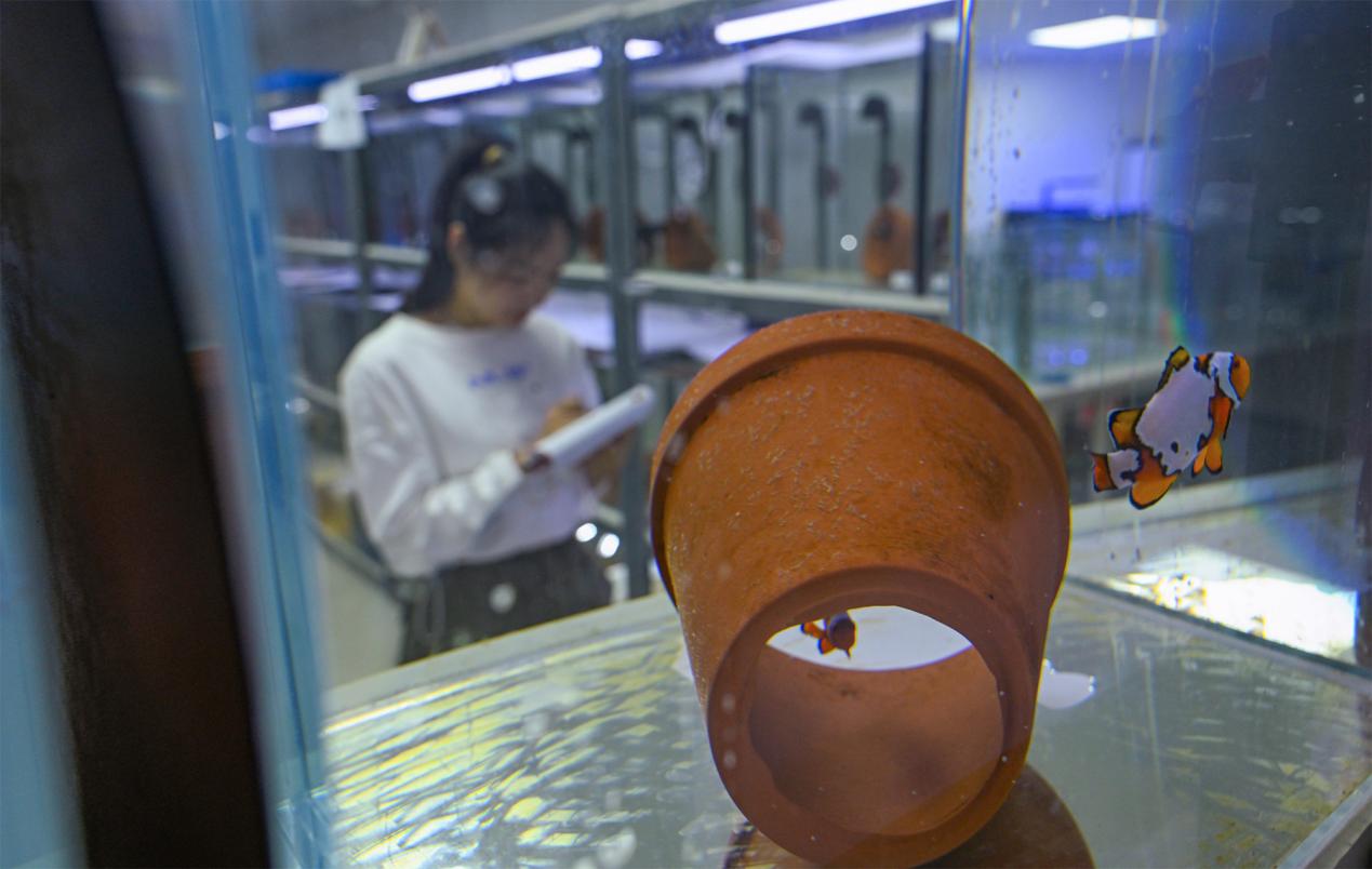 “养殖小丑鱼很简单,一天喂三次就行,学起来很快。”村民袁世娇说,她参加了培训,已经掌握了小丑鱼基本养殖技巧。