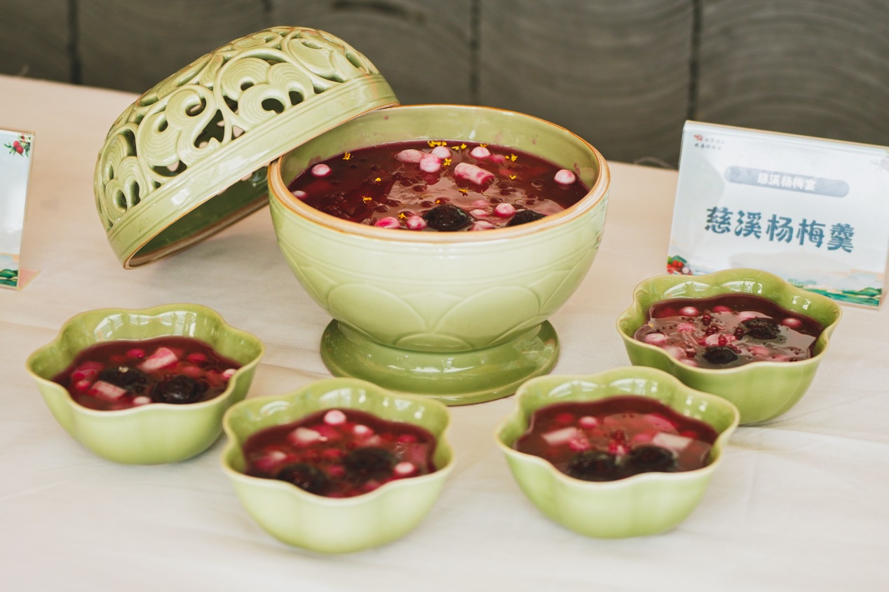 在食堂活动现场,慈溪(前湾)百县千碗·优选名厨们纷纷亮出绝活,将一道道色香味俱佳的美食呈现出来,现场还开展了百县千碗·共富助农慈溪生态杨梅展销。