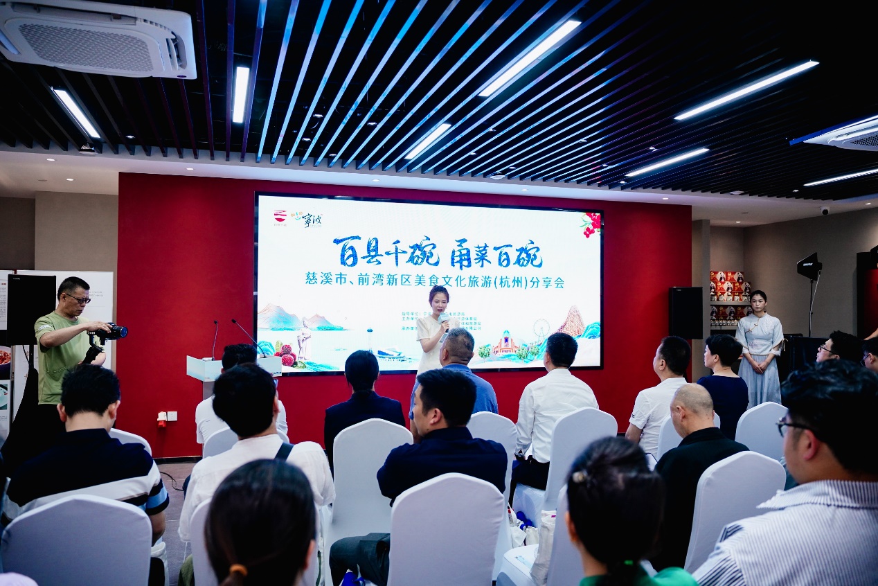 在美食文化旅游(杭州)分享会上,来自慈溪与前湾新区的文旅景区、企业代表等纷纷上台分享,向与会嘉宾展示了各自独特的文旅资源和美食文化。活动现场不仅品鉴了前湾十大碗和慈溪杨梅宴中的代表菜品,还发布了《慈溪菜宝典》,对慈溪特色美食进行了详细介绍和推荐。此外,现场授予了6位媒体代表“前湾新区文旅美食推荐官”称号,通过他们的传播助推前湾文旅发展。同时,活动还设置了文旅创意市集,将慈溪、前湾新区的特色美食、非遗文化、文创产品、旅游线路产品等一一展示,让游客们从味觉、视觉、情感上全方位感受这片土地的魅力。