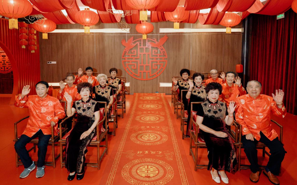 值得关注的是,本次活动不仅保留了婚礼的传统元素,还增添了子女向父母敬茶、颁发金婚证书等新环节。“没想到为父母尽孝也可以有这样满满的仪式感,算是圆了父母的一大心事。”部分老人家属说。