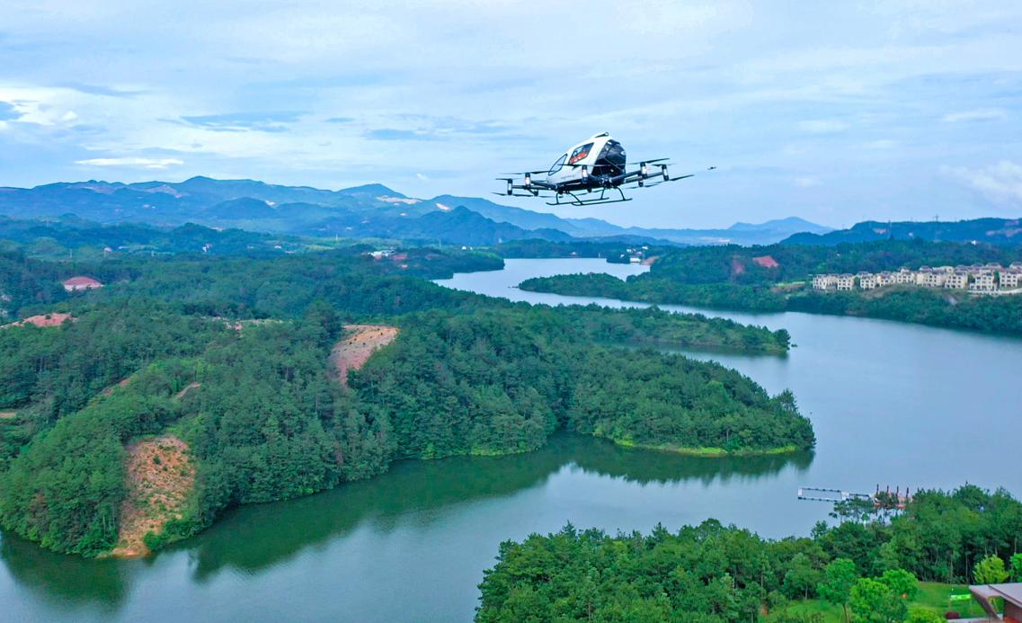 6月22日,亿航eVTOL文成首飞暨“低空游文成”仪式在浙江省温州市文成县举办。
