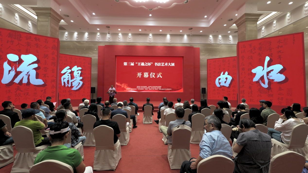6月26日,由浙江兰亭王羲之艺术研究院主办的流觞曲水——第三届“王羲之杯”书法艺术大展展览在浙江省杭州市浙江展览馆举行。30多位书法大家、书法爱好者和来自全国各地的第三届“王羲之杯”书法大展入围者出席了开幕式。