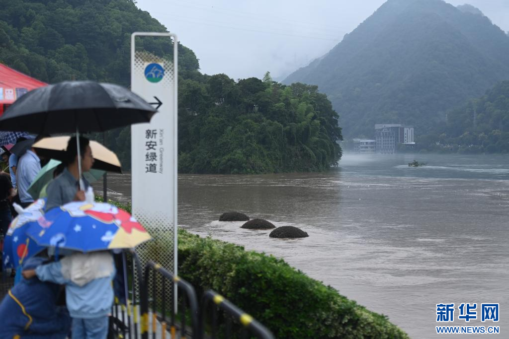 市民在浙江建德城区新安江畔察看涨水情况。新华社记者 黄宗治 摄