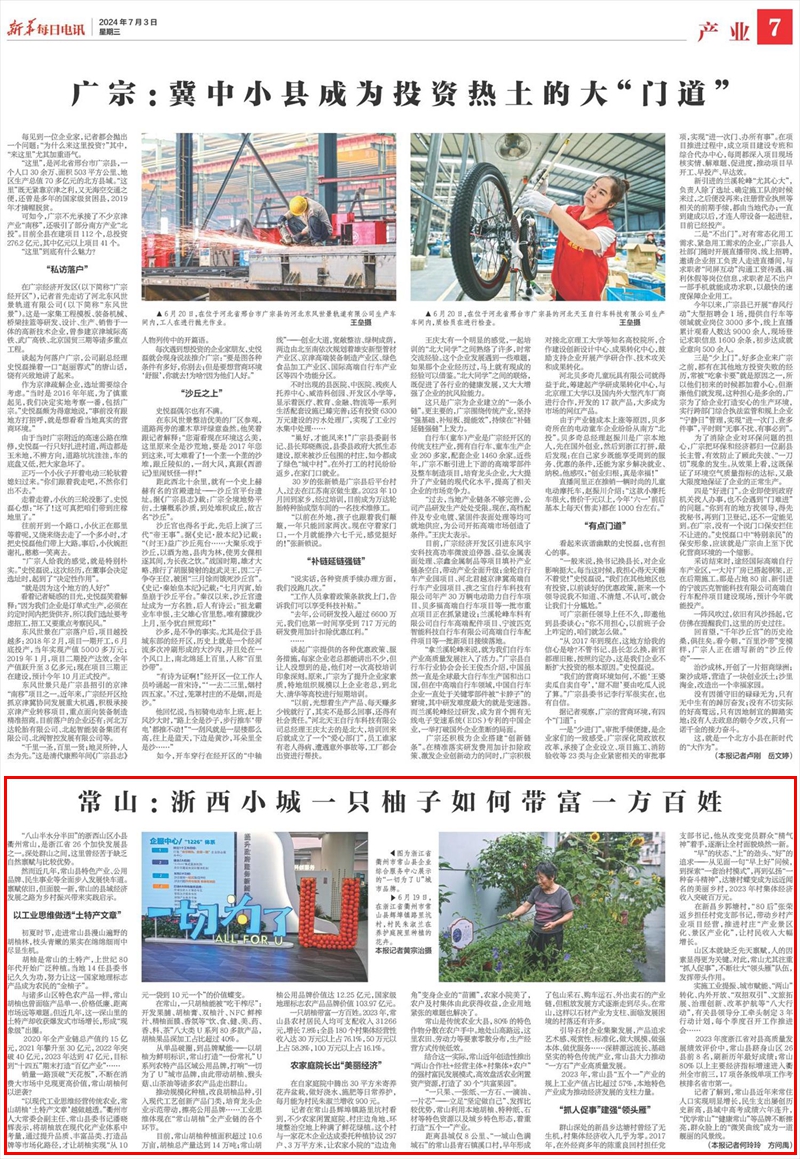 “一只果、一张纸、一方石、一滴油、一片芯”——立足“坚定做自己”、发挥比较优势,常山利用本地胡柚、特种纸、石材等特色资源以及城乡特色形态,着重打造“五个一”产业。
