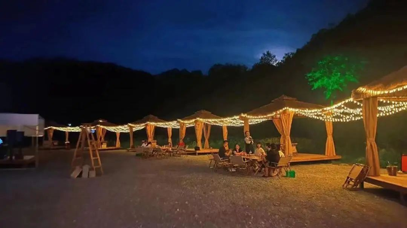 近日,位于浙江省丽水市龙泉市石达石街道秋丰村的洛丹伦营地亮起橘色彩灯,绿树草坪间散落着星星点点的帐篷,游客们三五成群围坐着,一边闲聊,一边吃烧烤、涮火锅。