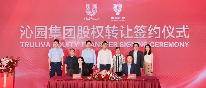 7月25日上午,联合利华与甬潮创投在宁波前湾新区沁园集团总部举行沁园股权交易签约仪式。