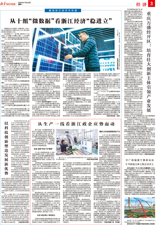 眼下正是一年中最热的时节,也是不少企业鼓足干劲的生产旺季。连日来,记者走进浙江杭州、宁波、温州、绍兴、嘉兴等地企业车间,透过生产一线,看浙江政企因势而谋、应势而动。