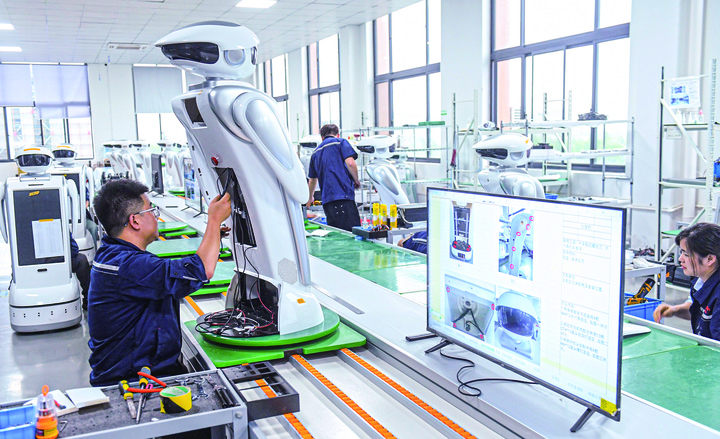 5月27日,在宁波尚闻科技集团有限公司(Sungven),工作人员在装配机器人。新华每日电讯记者翁忻旸摄