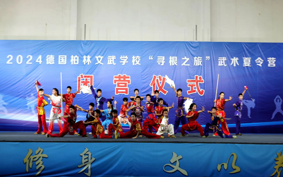 身着现代运动装和传统武术服的两组学生,共同表演展现东方文化之美的台州南拳和南太极拳,一招一式,刚勇有力、松弛有度。7月29日,2024德国柏林文武学校“寻根之旅”武术夏令营在浙江省台州市黄岩区闭营,13名德国籍华裔学生和“新朋友”一起,以汇报演出的形式展现学习成果。