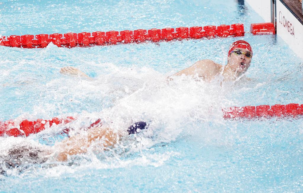 8月4日,中国队选手潘展乐(右)率先撞线。新华社记者 黄宗治 摄