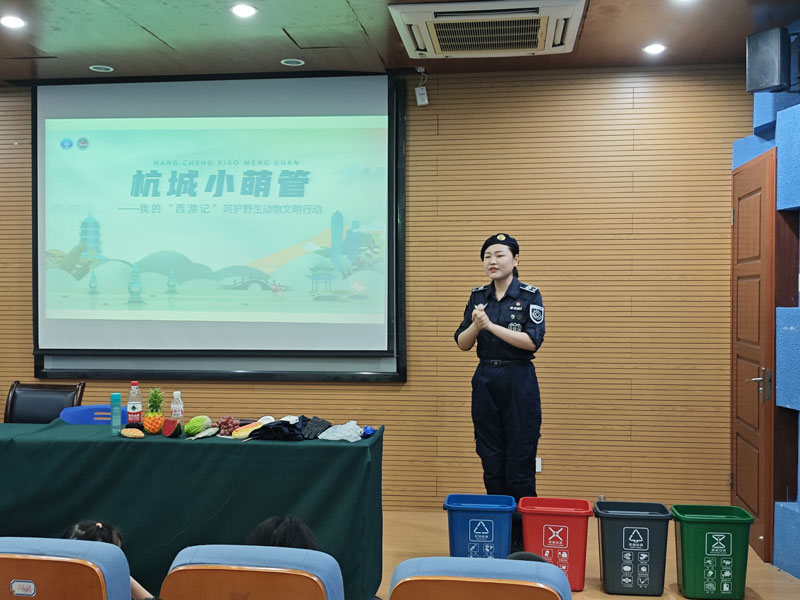 近日,“杭城小萌管”之我的“西游记”暑期活动(第三期)举行。杭州西湖风景名胜区综合行政执法队携手杭州动物园(少儿公园)举办了一场以“呵护野生动物 保护生态环境 践行垃圾分类”为主题的活动,旨在引导少年儿童树立环保意识和城市主人翁意识,养成垃圾分类习惯,共同保护西湖景区生态环境。